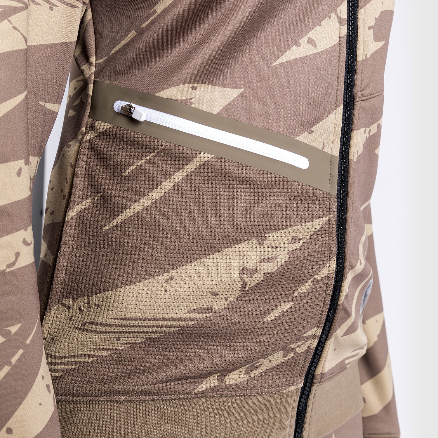 Its bold camouflage print, with white Venum and UFC logo detailing, is a nod to the adrenaline-fueled experience of Fight Week - from media workouts to weigh-ins.
