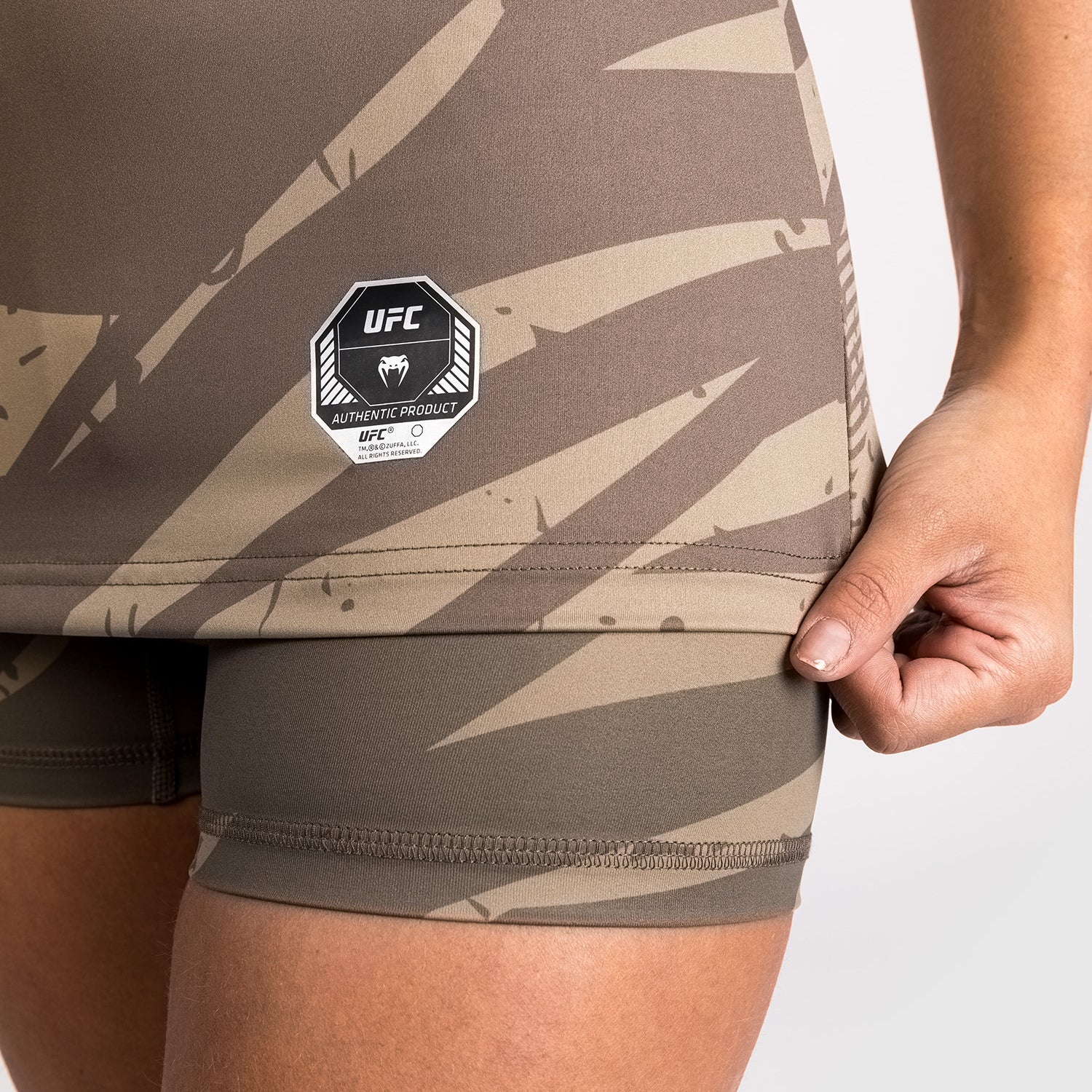 Its bold camouflage print, with white Venum and UFC logos, is inspired by athletes who step into the Octagon, ready to strike and counter strike.