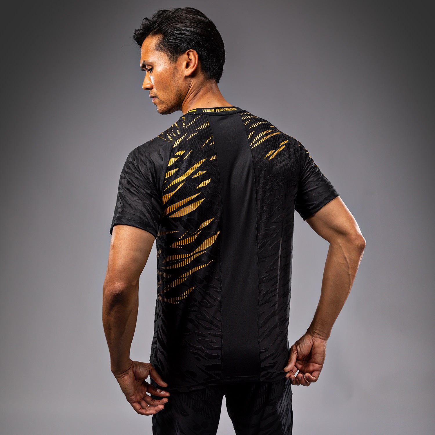 UFC Fusion by Venum Authentic Fight Night Men’s Walkout Jersey in Black/Gold is a lightweight performance shirt with enough stretch to move with you. You’ll stay comfortable and cool with the shirt’s Dry-Tech fabric, even during the most intense training sessions. This Black/Gold colorway is reserved for UFC champions.