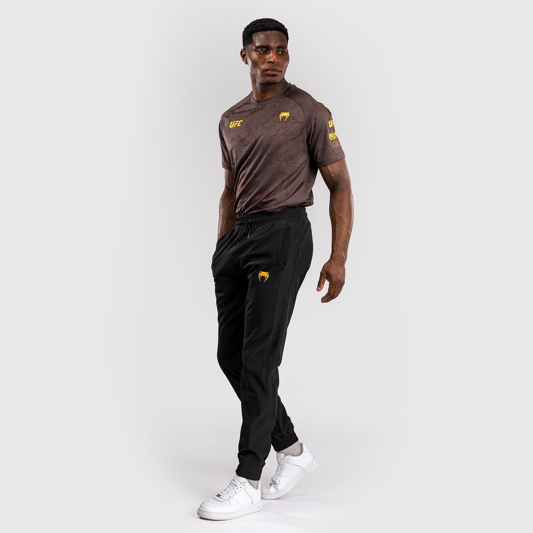 The UFC Fusion by Venum Fight Week Men’s Pant features zippered side pockets and a drawstring waistband. Made with a premium stretch fabric, these pants move with you - perfect for all athletes on the go. This black/gold colorway is reserved for UFC champions.