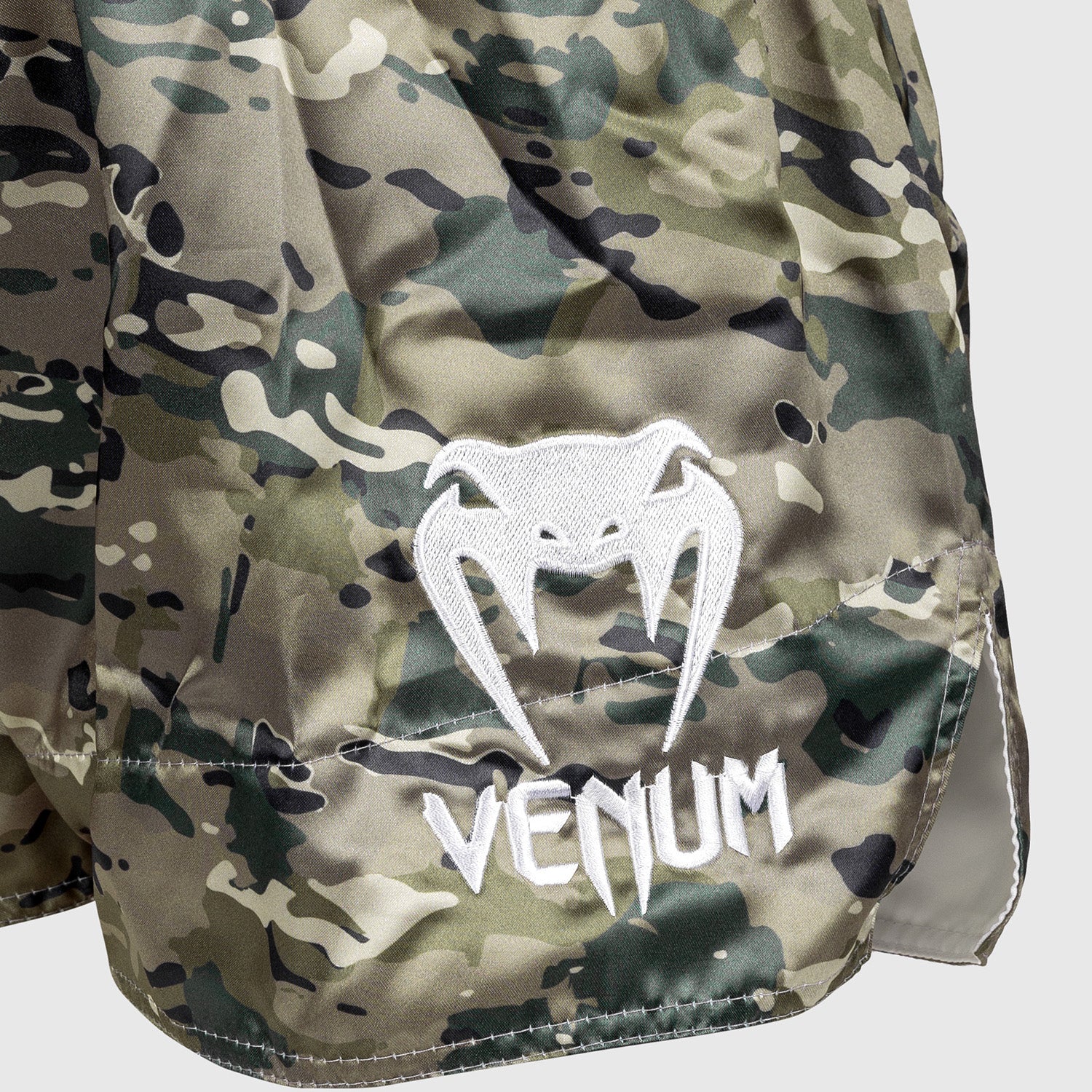 These Muay Thai Classic shorts in Desert Camo have a sleek design, with neat finishes and the unmistakable Venum logo at the waist and leg.