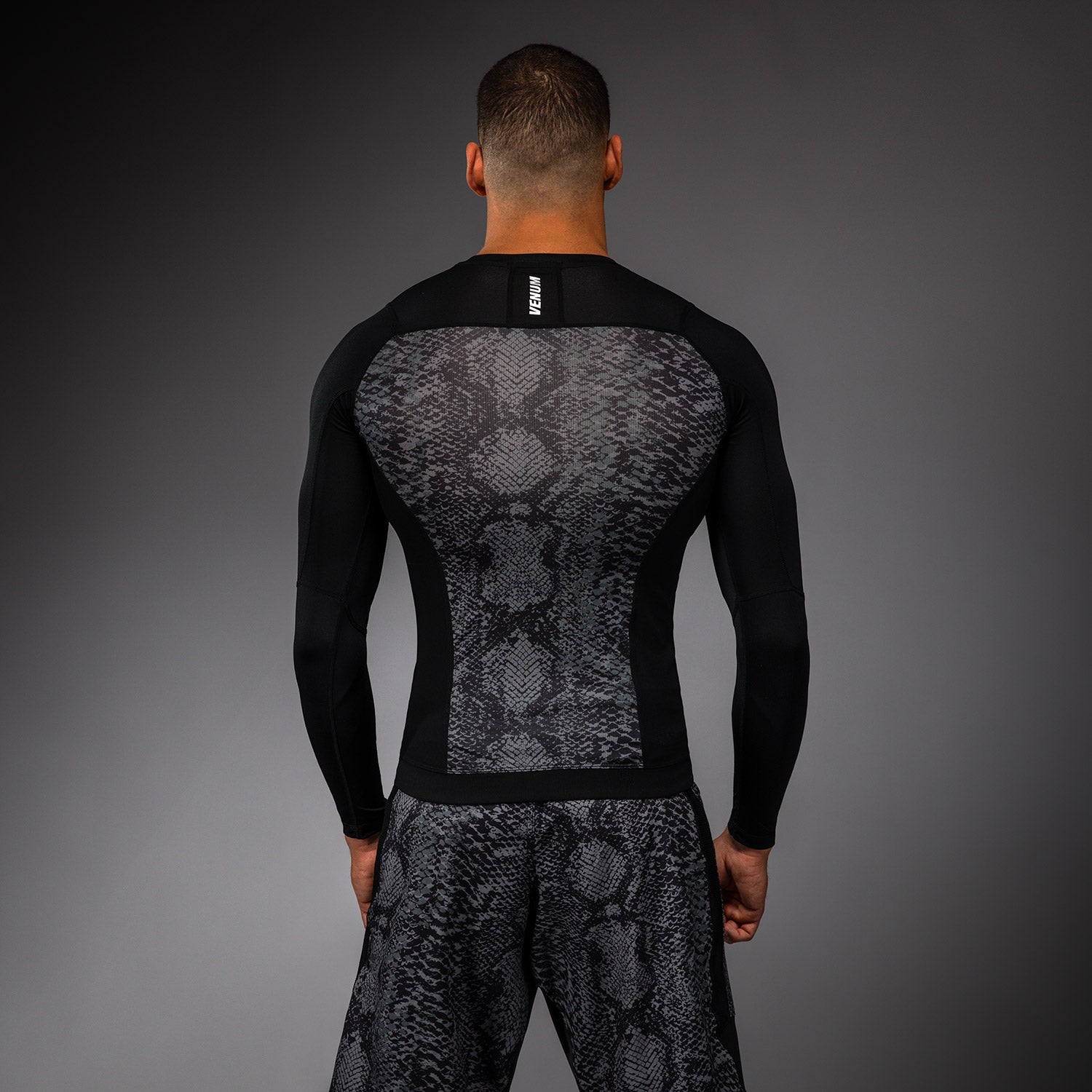 The Venum G-Fit Scales collection combines lightweight, technical fabrics and understated design to deliver a modern performance range for combat sports and fitness. The Venum G-Fit Scales Men’s Long Sleeve Rashguard serves as a second skin, offering protection from scrapes and burns during grappling. The rashguard’s compression technology may also help encourage muscular recovery. Lightweight and flexible, this rashguard allows you to move freely during groundwork and striking. Reinforced seems stand up to even the most intensive training in BJJ, MMA or the weightroom.