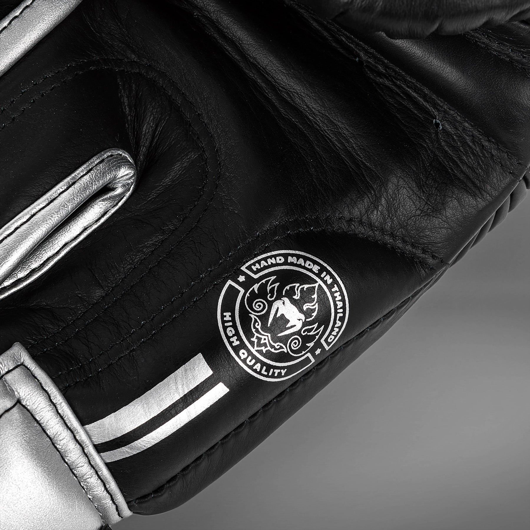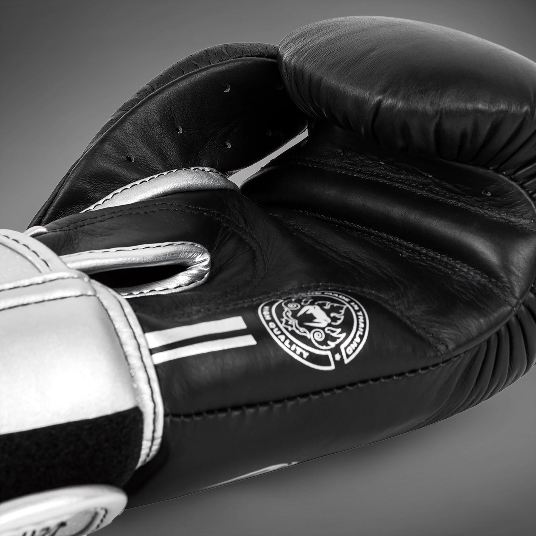 This Black/Silver colorway features a matte finish with metallic silver logo and detailing. A tonal design on the wrist strap is a subtle nod to the gloves authentic Thai origins.