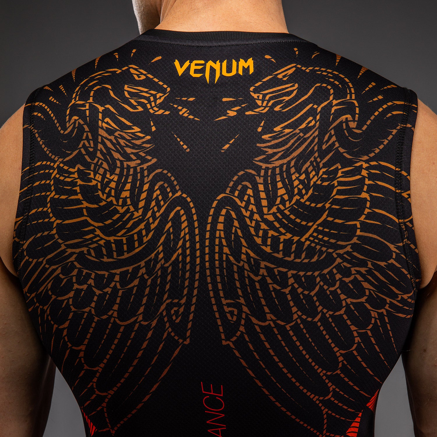 The Venum’s Quetzal Fury Men's Sleeveless Rashguard serves as a second skin, offering protection from scrapes and burns during grappling. This top is designed for intensive performance. Its compression technology may help encourage muscular recovery. Lightweight and flexible, this rashguard allows you to move freely during groundwork and striking. Reinforced seems stand up to even the most intensive training in BJJ, MMA or the weightroom. Pairs seamlessly with other pieces from the Quetzal Fury range for a unified performance look.
