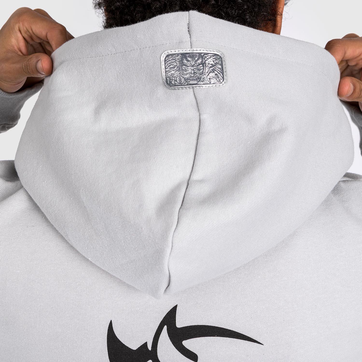 A silver metallic patch is embroidered at the hood, imitating the metallic plate present upon the Demon 170’s 1025-horsepower engine. Fans of Venum and Dodge will also appreciate the Demon 170 logo, Challenger SRT and Dodge x Venum logos across the back of the hoodie.